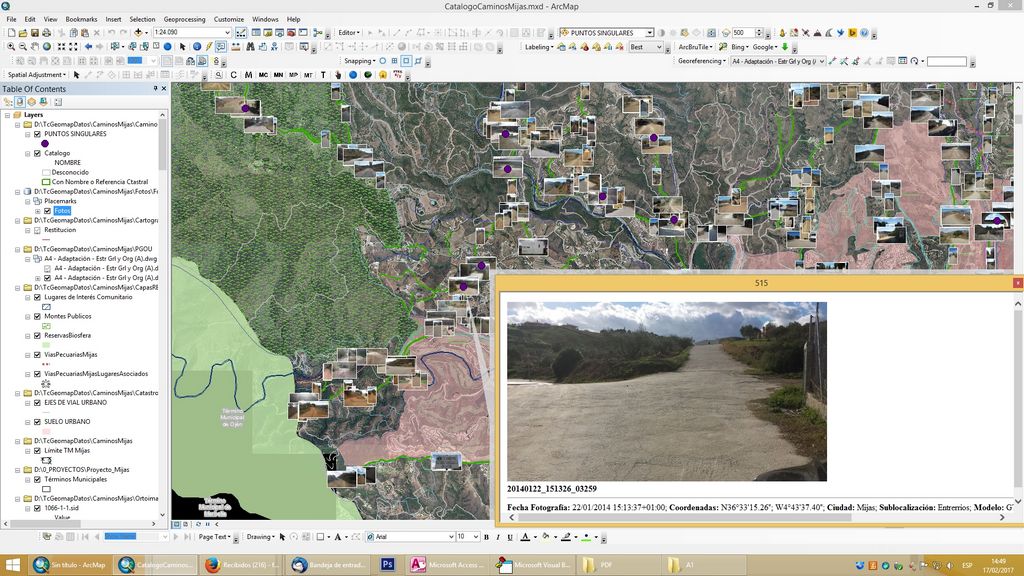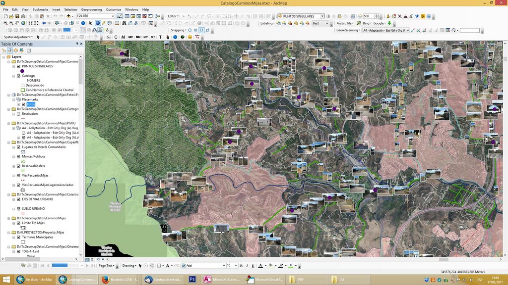 Los trabajos necesarios ha sido la realización de una cartografía de las redes viarias, estudio histórico del dominio público de dichos caminos, inventariado de los mismos y su integración en un SIG realizado exproceso.
